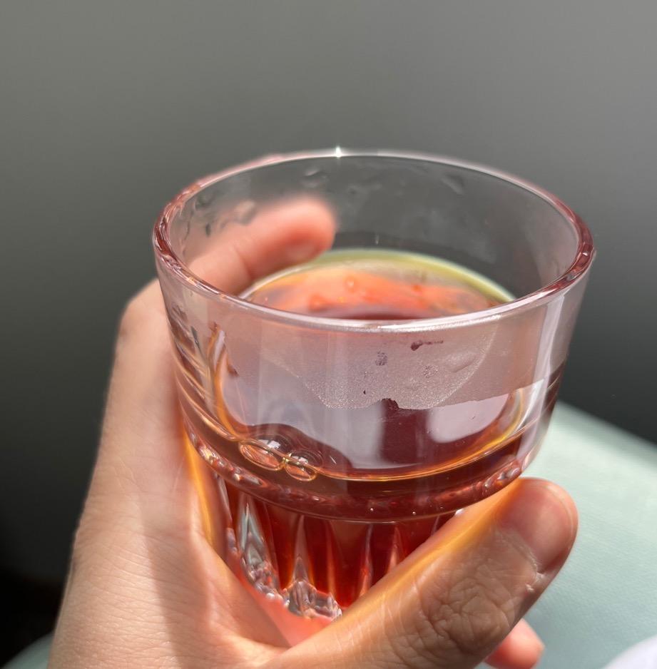1⃣️这款豆子香气浓郁复杂,酒韵突出,有明显的发酵酒香,酸度不高,挺甜的成熟葡萄的甜感。能感受出葡萄、玫瑰、红酒的风味,风味比较容易捕捉到,酒韵很合适,没有压制其他的风味,还算不错了。