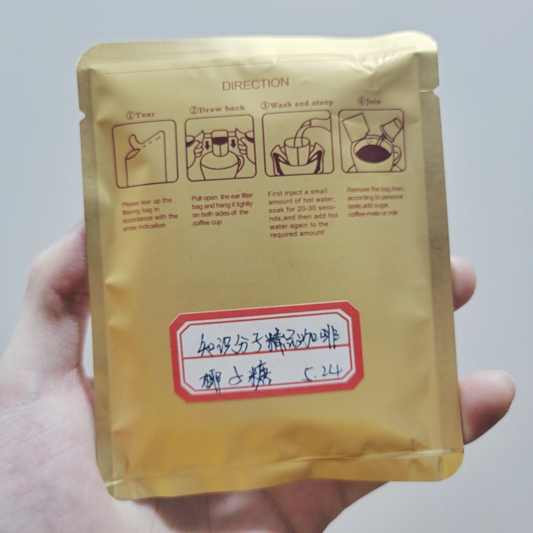 这是送一泡样豆,V60滤杯,15克粉,235克水,冲煮时间一分三十秒内。